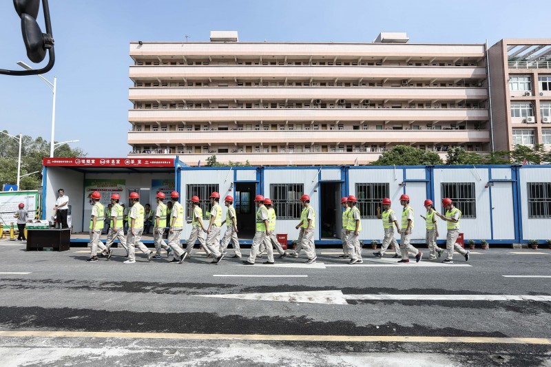 整齊的施工隊伍